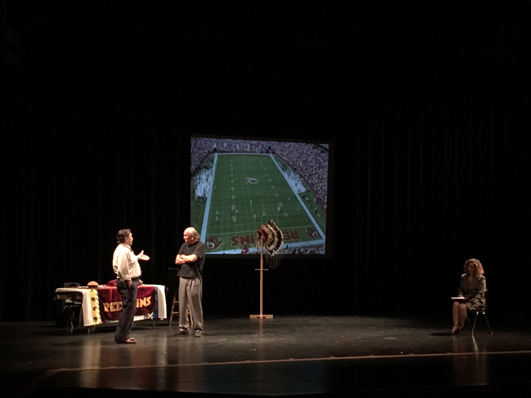The play was staged throughout the school day for students of Roosevelt High School, and again that evening for the community at large. Over 300 members of the community came to the evening production to explore the controversy surrounding the NFL’s Washington Redskins’ mascot and its impacts on Native Americans and all people. After each production of the play, the cast and crew hosted a dialogue session with the audience.